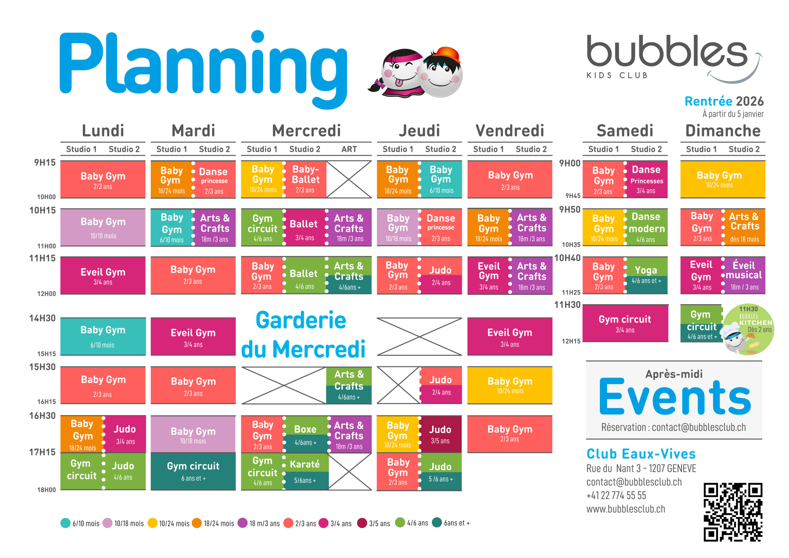 …. PLANNINGS …. PLANNING RENTRÉE 2026à partir du 5 janvier 2026 Abonnements & inscriptions Pour plus d'informations CLIQUEZ ICI